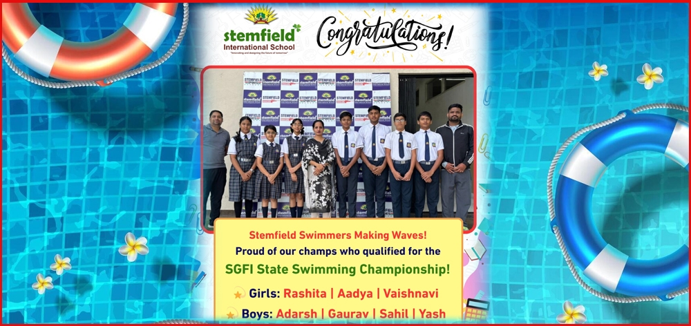 Making Waves of Glory! Stemfield International School, Vijay Nagar Our budding swimmers have once again made a splash of success! With unmatched determination and brilliant performances, they triumphed at the Divisional Level Swimming Competition and have now qualified for the SGFI State Swimming Championship! Girls Category: 1. Rashida Rajak – Class 8 (100 m Freestyle) 2. Aadya Pachori – Class 6 (50 m Breaststroke & Diving) 3. Vaishnavi Garhwal – Class 7 (Diving) Boys Category: 1. Adarsh Rai – Class 9 (50m Butterfly & 200m IM) 2. Gaurav Rajpoot – Class 9 (Freestyle) 3. Sahil Singh – Class 9 (Water Polo & Diving) 4. Yash Jaiswal – Class 9 (Polo & Diving) The School Management proudly congratulates all our Water Warriors for their outstanding achievements and wishes them greater success at the upcoming SGFI State Championship! |