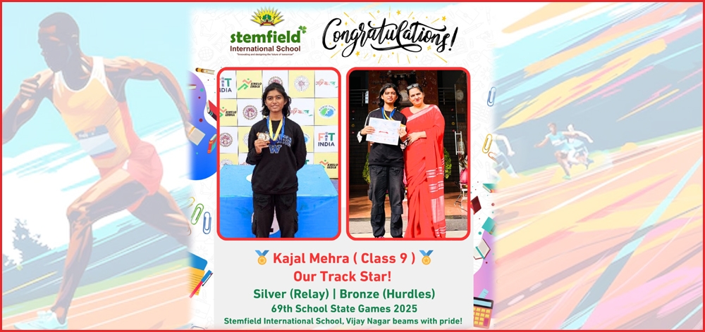 Shining on the State Stage! A moment of immense pride for Stemfield International School, Vijay Nagar! Our young athlete Kajal Mehra of Class 9 has showcased extraordinary talent and determination at the 69th School State Games 2025, held from 25th to 29th October* at T.T. Nagar Stadium, Bhopal. Silver Medal – 4×100m Relay Race Bronze Medal – 400m Hurdles Race The School Management congratulates Kajal for her remarkable achievements and wishes her greater success in all future competitions! |